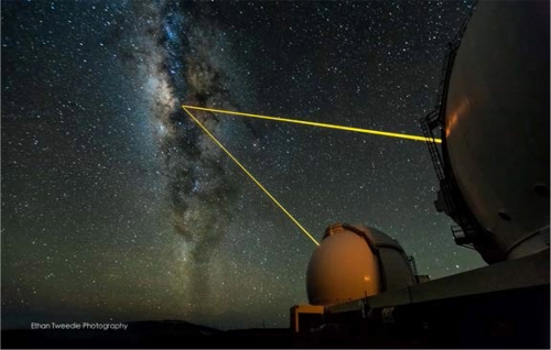 Top: Double Lasers from KECK I and KECK II creating an artificial laser guide star (LSG). Maunu Kea, Hawaii. Image Credit: It is mandatory to include the link Ethan Tweedy Photography - http://www.ethantweedie.com/ when downloading one or both of these images, and also when incuding them in, but not limited to, any kind of presentation or educational environment. They may not be used for re-distribution.